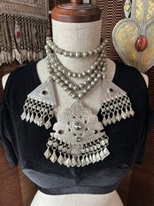 豪華な4連のカシミールネックレス。色飾りをモノトーンカラーに入れ替えています。