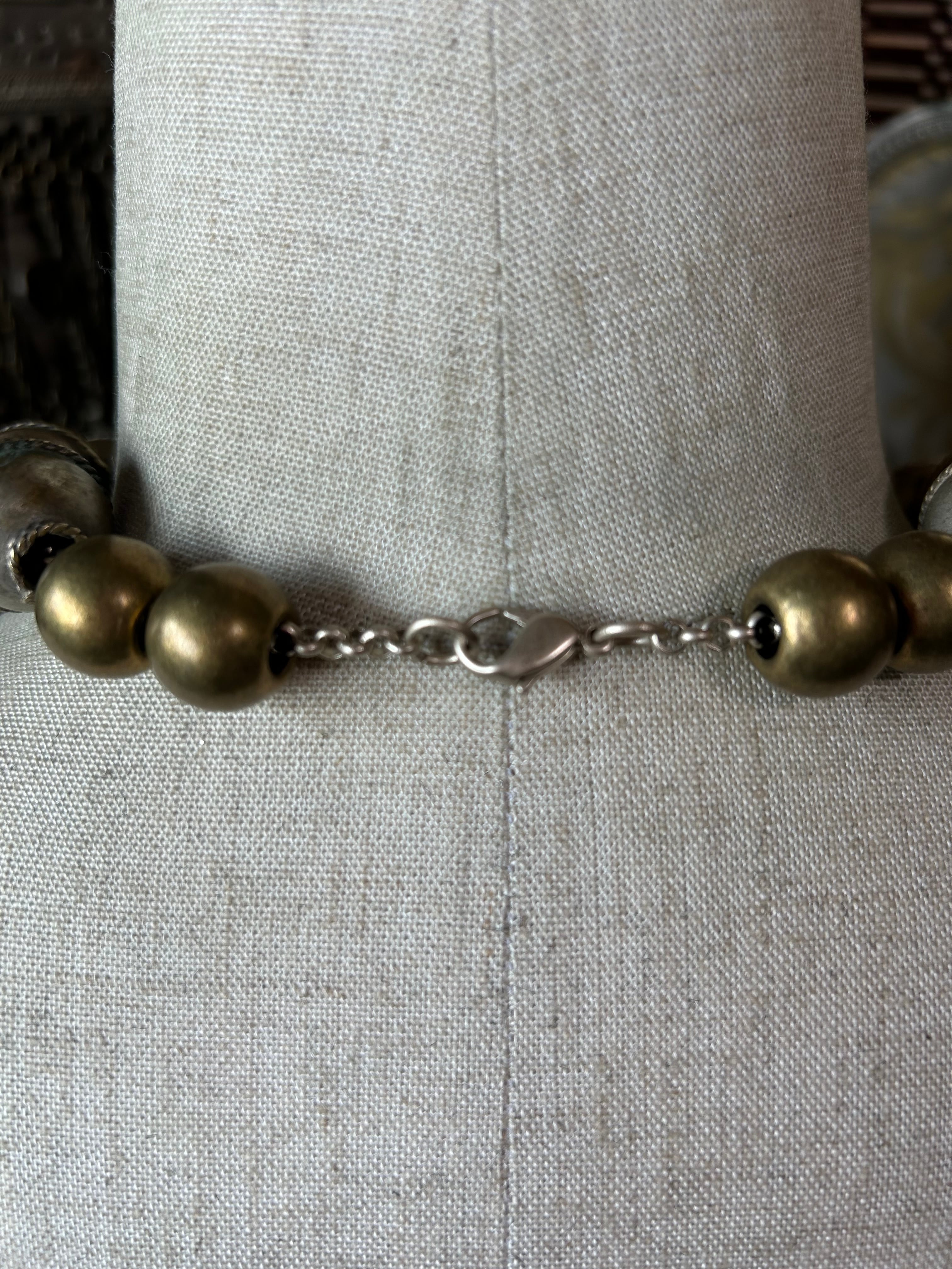大粒ヴィンテージメタルビーズを使ったチョーカー。輝き過ぎない程度に磨いています。