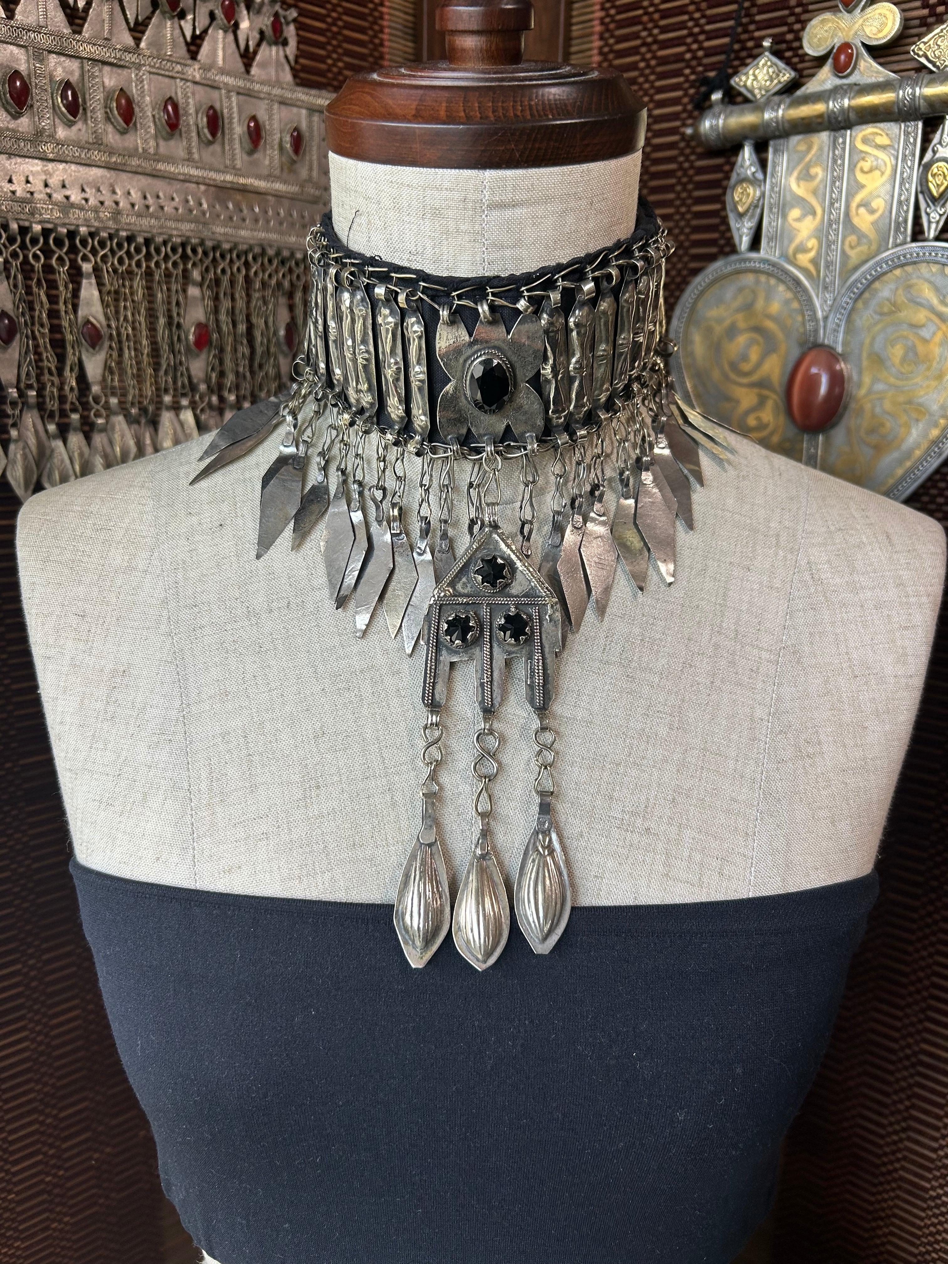 ジェットブラックの大粒スワロフスキーを入れたトルクメンネックレス。わりと新しいお品のようで、