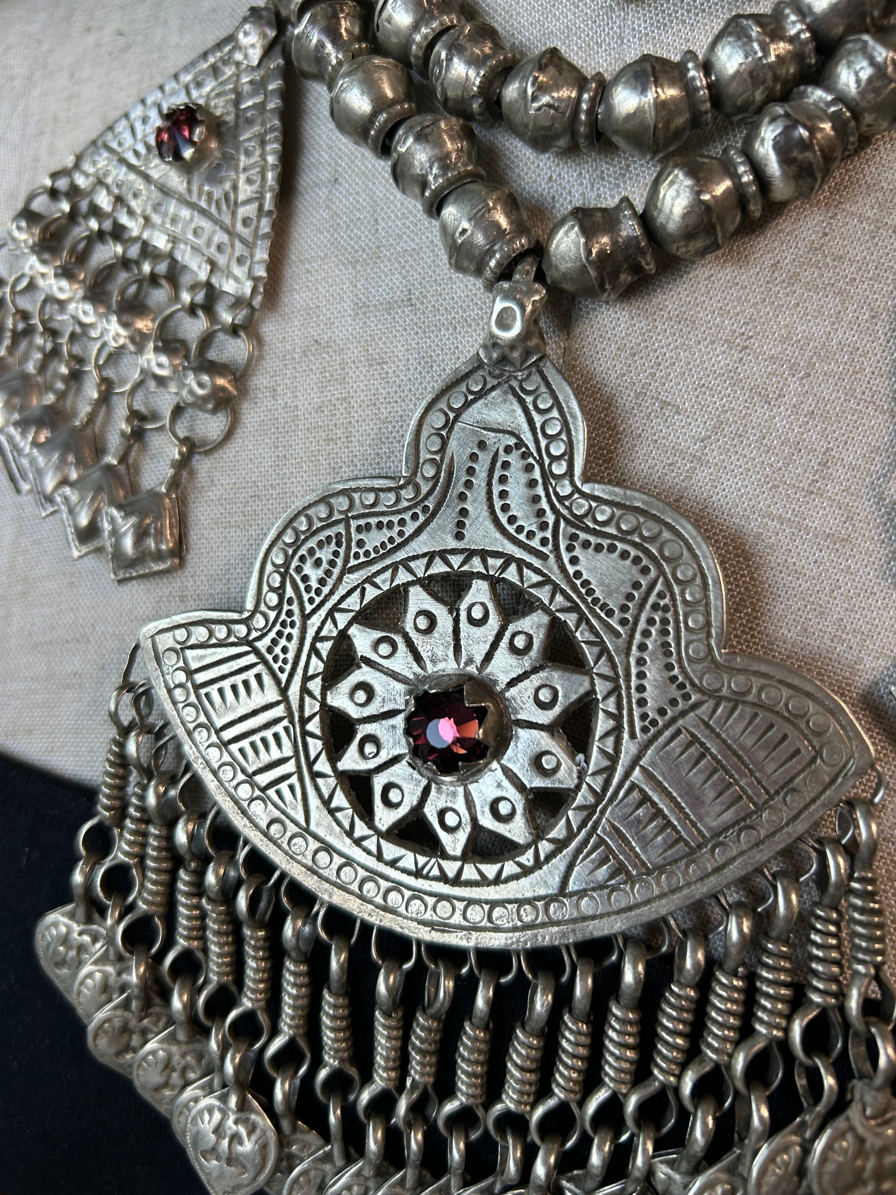 ゴージャスな4連のカシミールネックレス。年々入手が困難になってきています。スワロフスキー のお色はボルドー。ロゼのような淡いワインレッドです。洗浄済み。