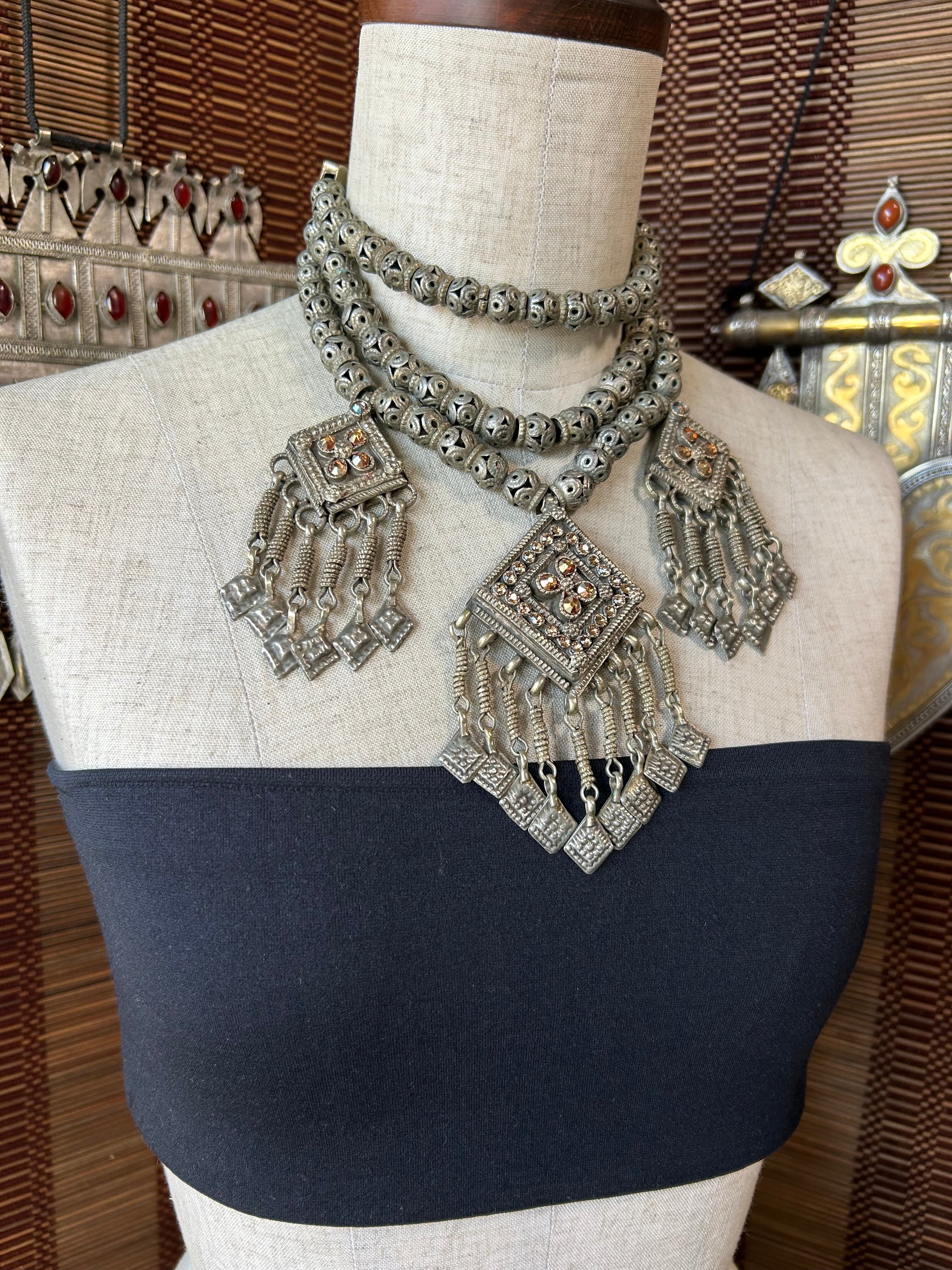 I added pale amber Swarovski crystals, which would go well with a classic outfit.