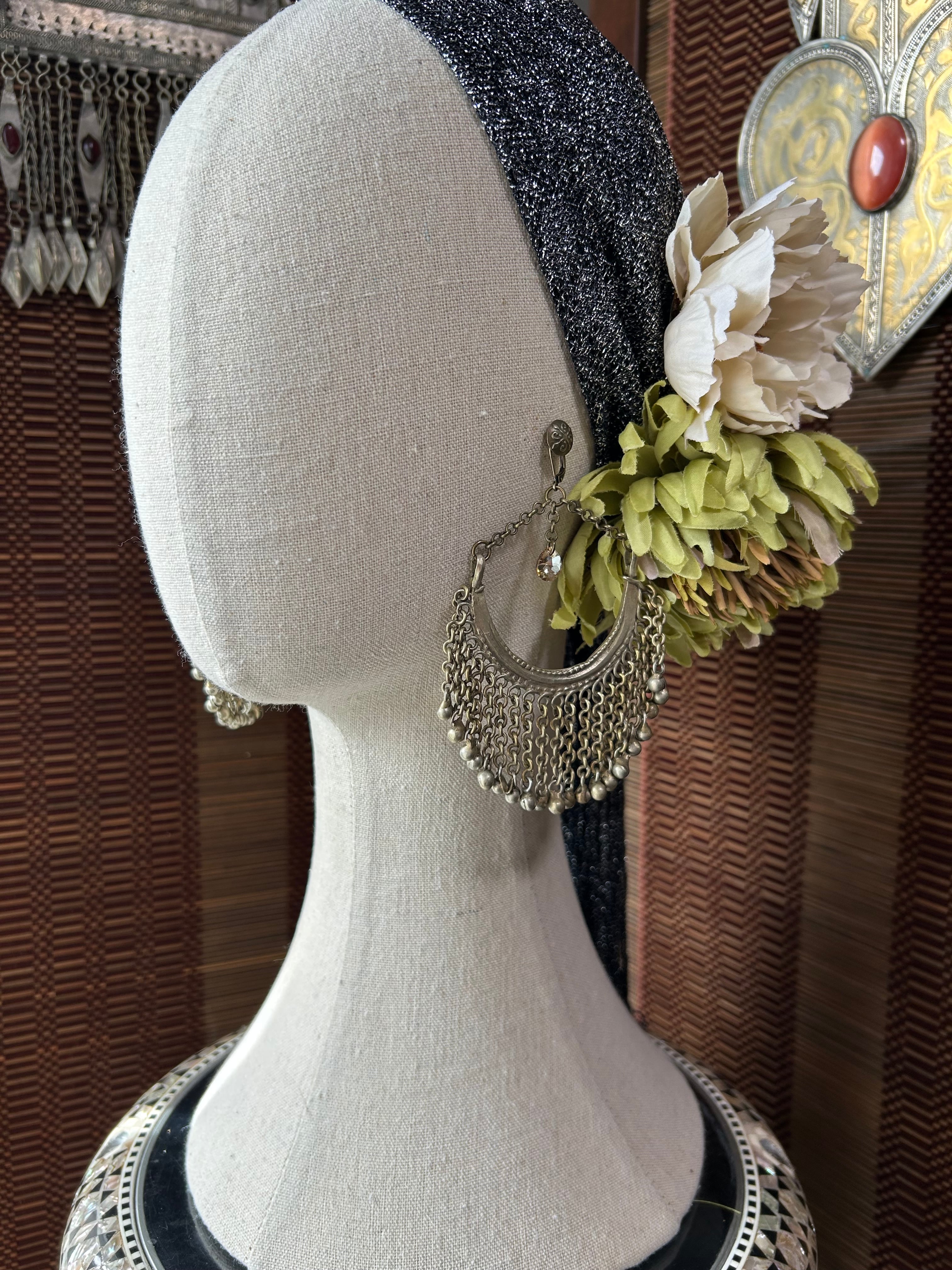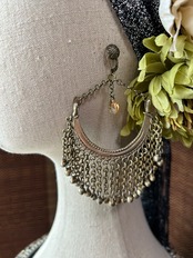 金属にほんのり金色味があります。ゴールデンシャドウという淡い琥珀色に輝くスワロフスキー を合わせました。フレンチフックを付けています。