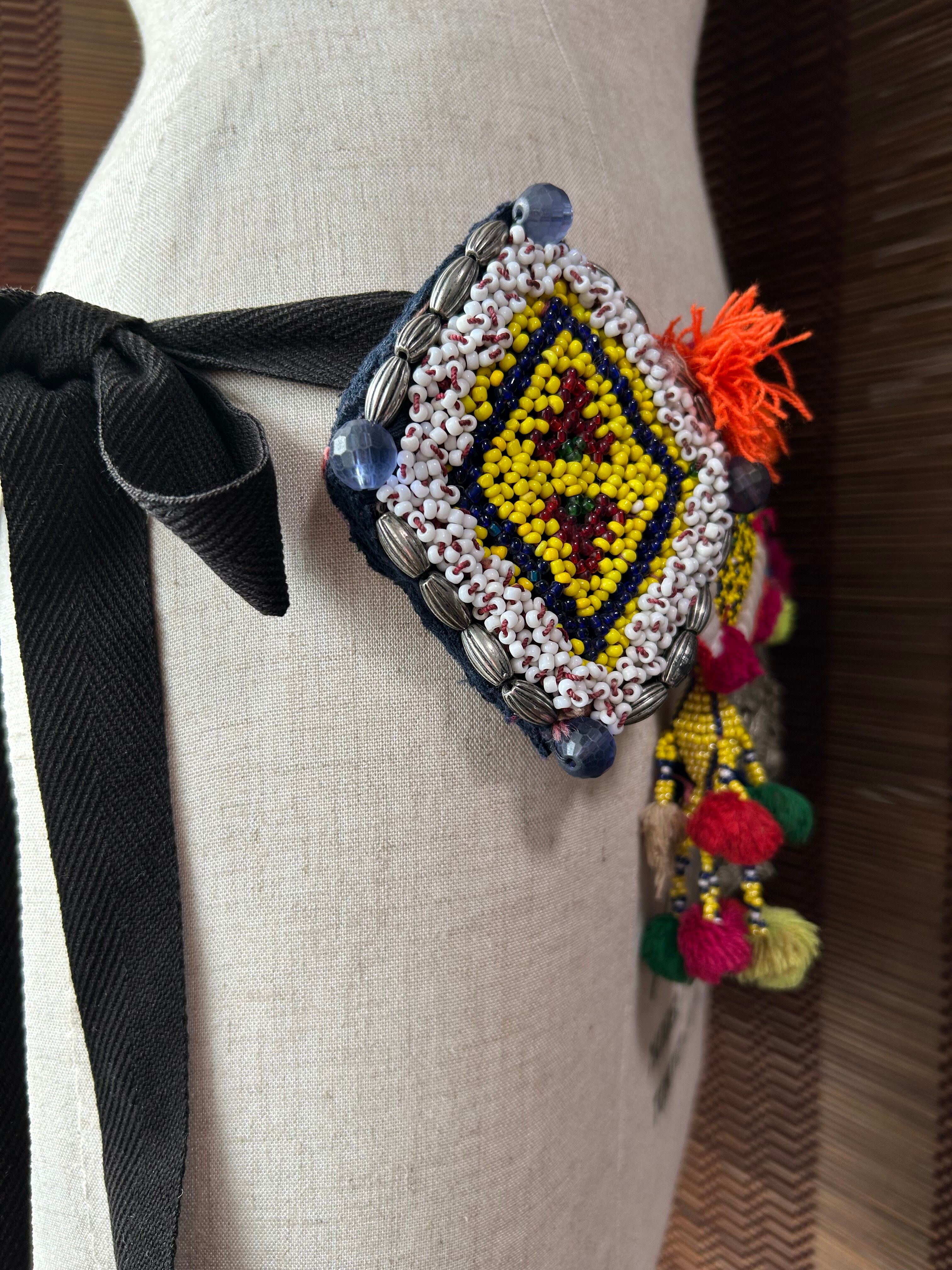 The base is a ready-made item. It's a vintage piece with plenty of high-quality coins. It was washed to remove any sand or dirt, and the string, which was difficult to tie and would permanently fade, was cut and replaced with a black string. The decorative part was originally short, so a remade medallion was added. It's suitable for FCBD, but also for cutting-edge fusion styles.