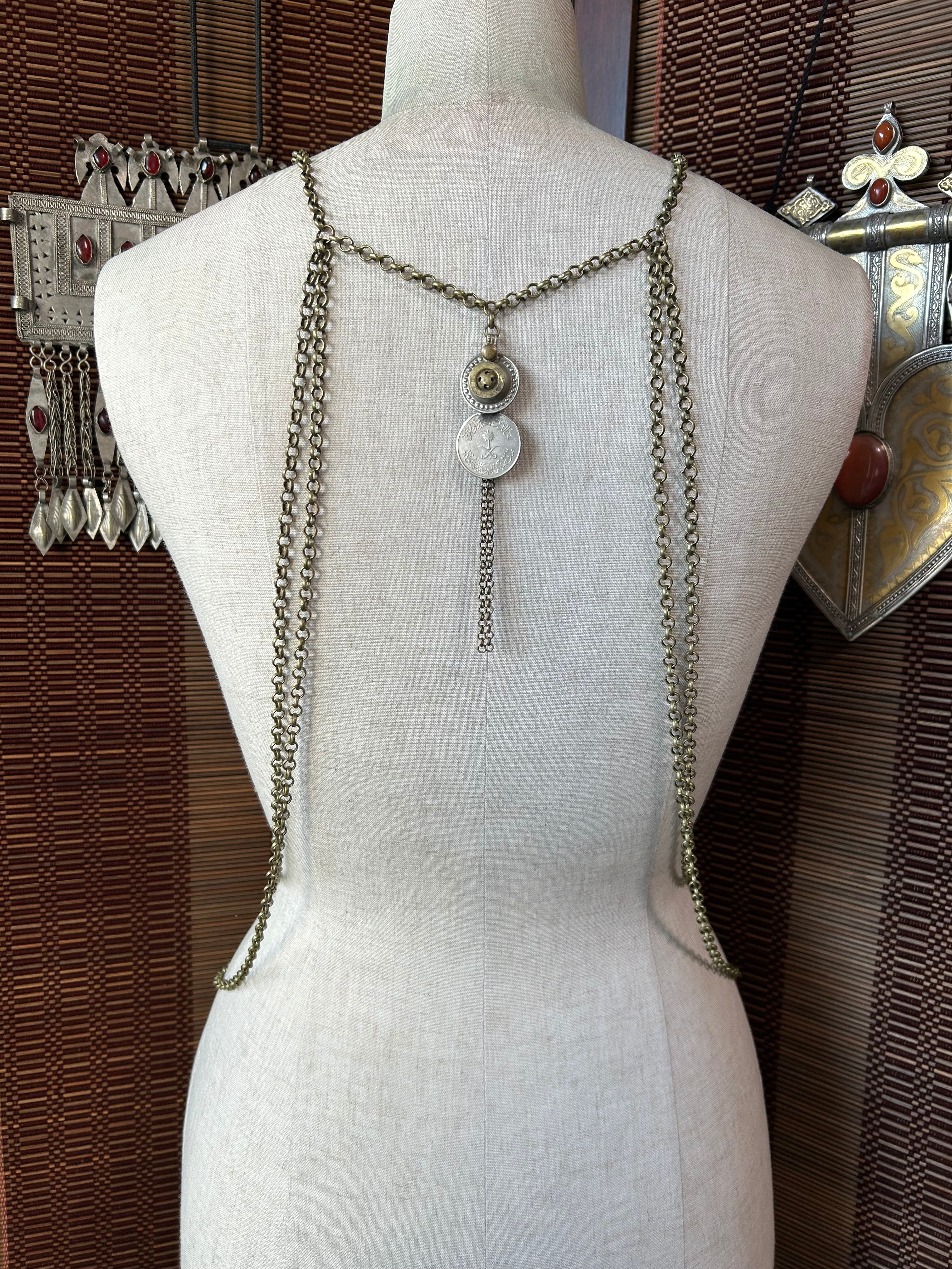 I also paid special attention to the back, positioning the chain and ornament so that they do not overlap with the ties of a choli or bra, and create a beautiful open back.