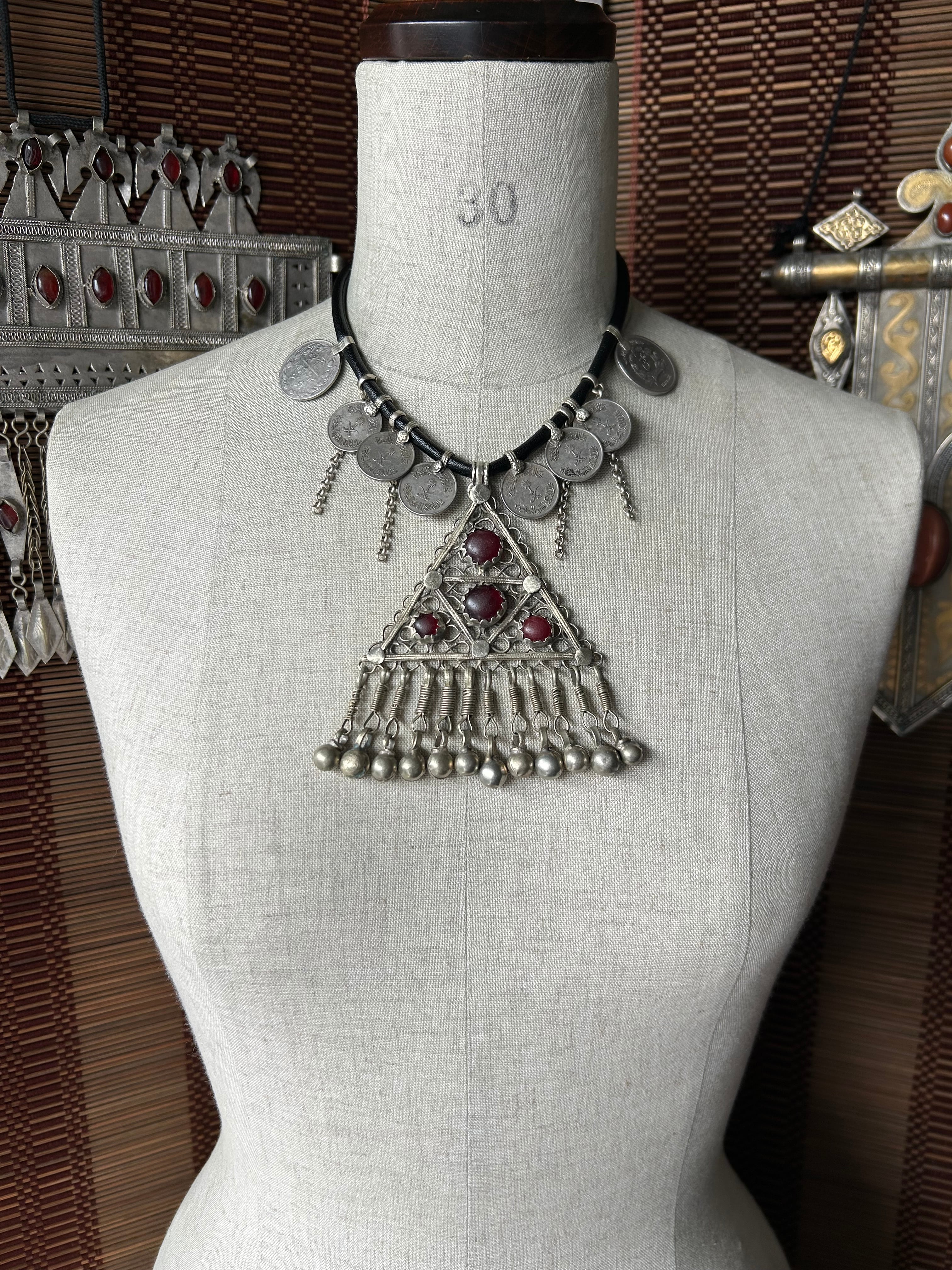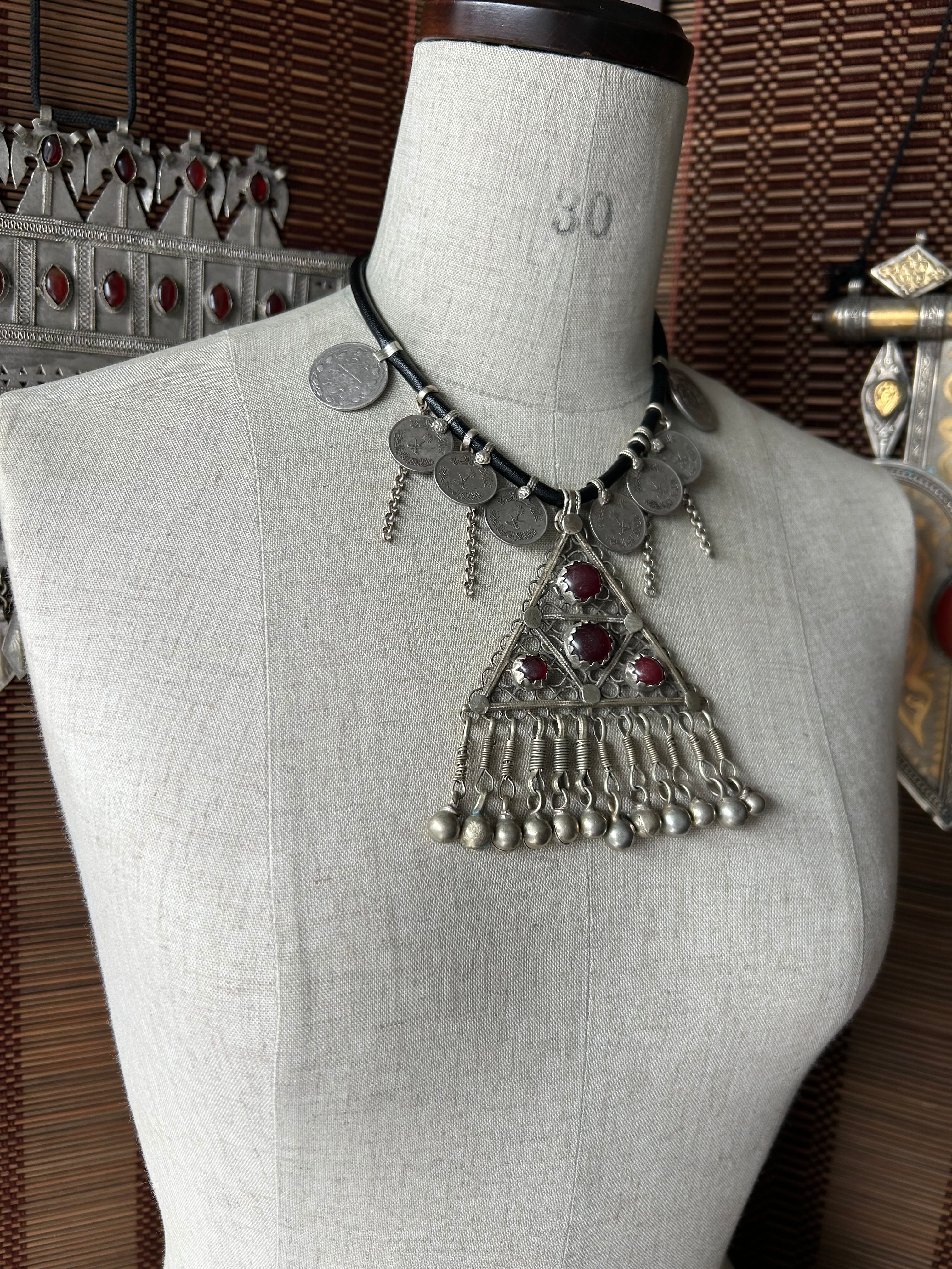 It's topped off with a high-quality small vintage coin. The vegan leather round cord is gentle around the neck.