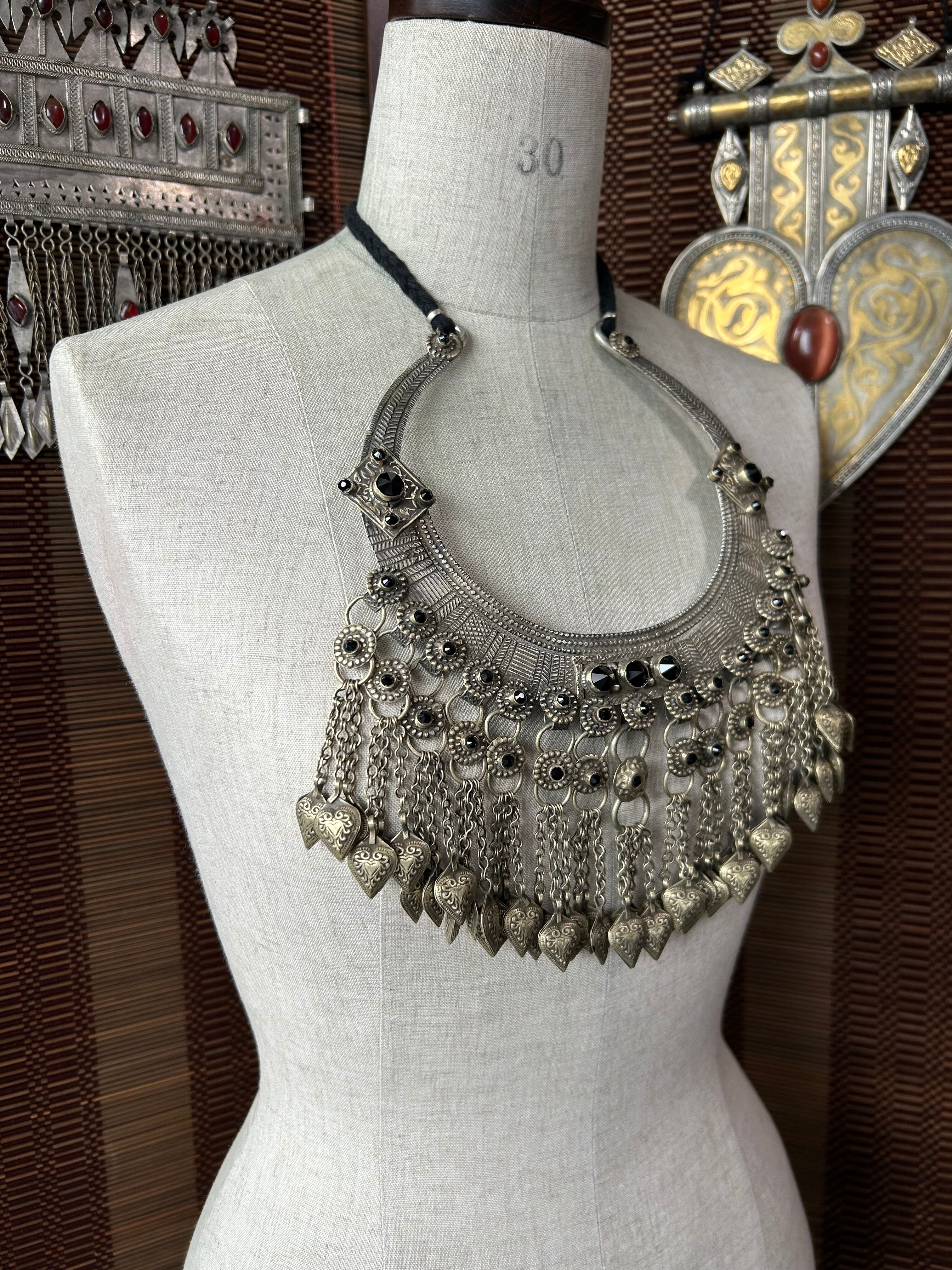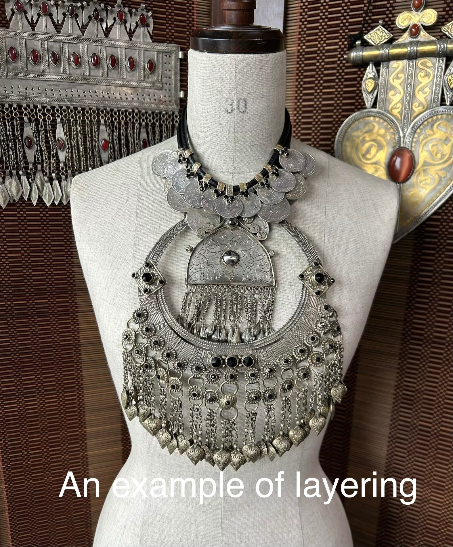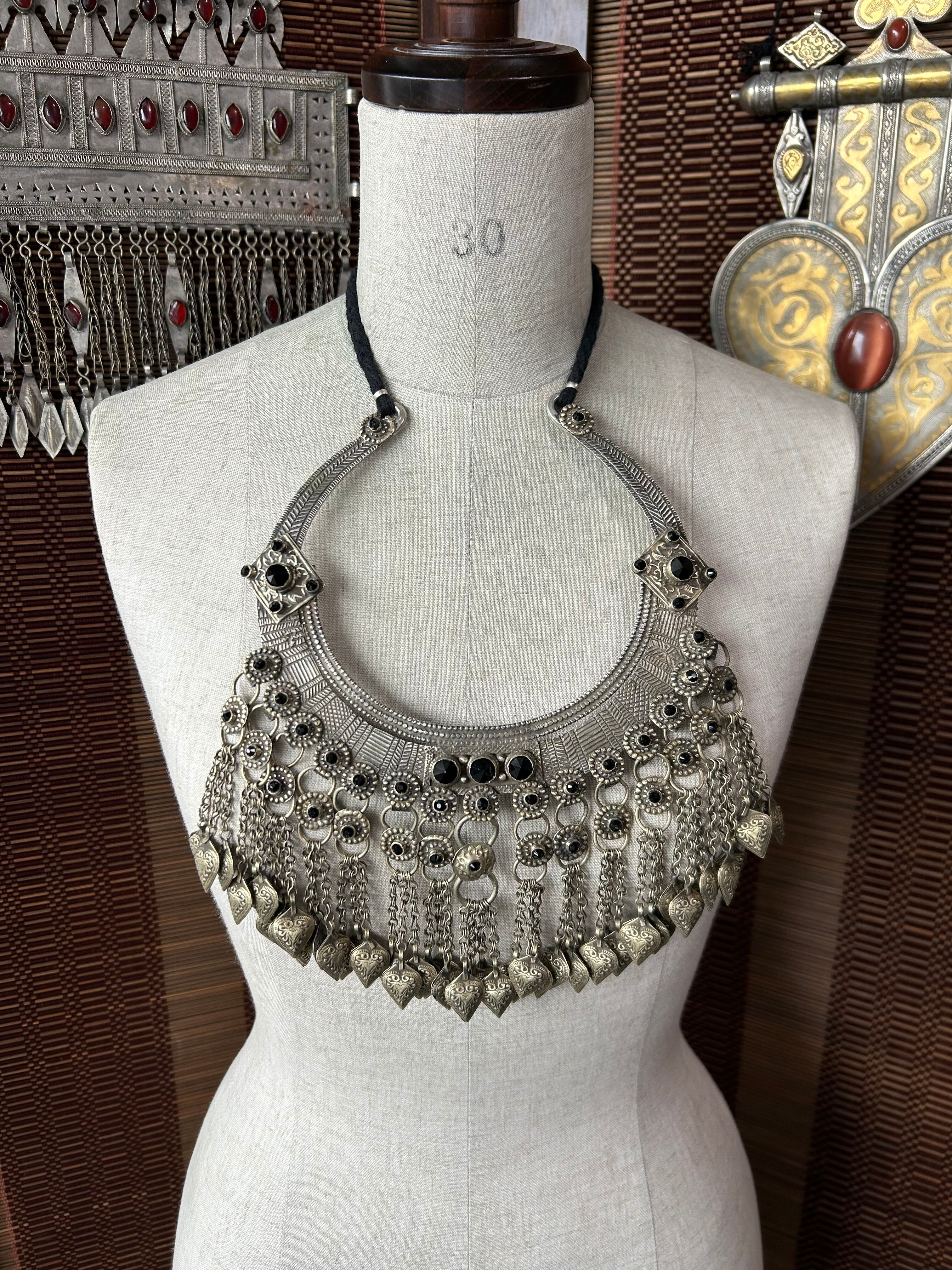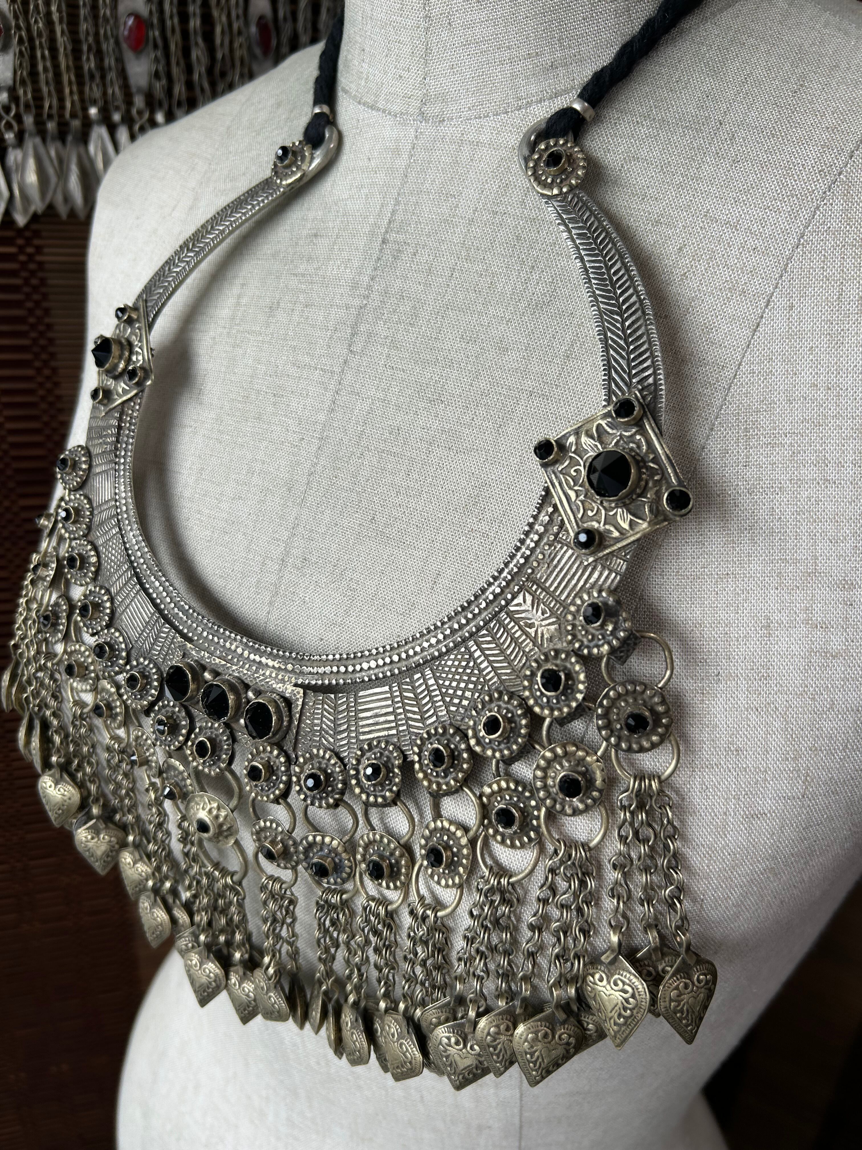 This is a wonderful piece that has been carefully crafted down to the smallest detail. The stones have been replaced with black stones for ease of use. Enjoy layering it with your existing chokers and necklaces.