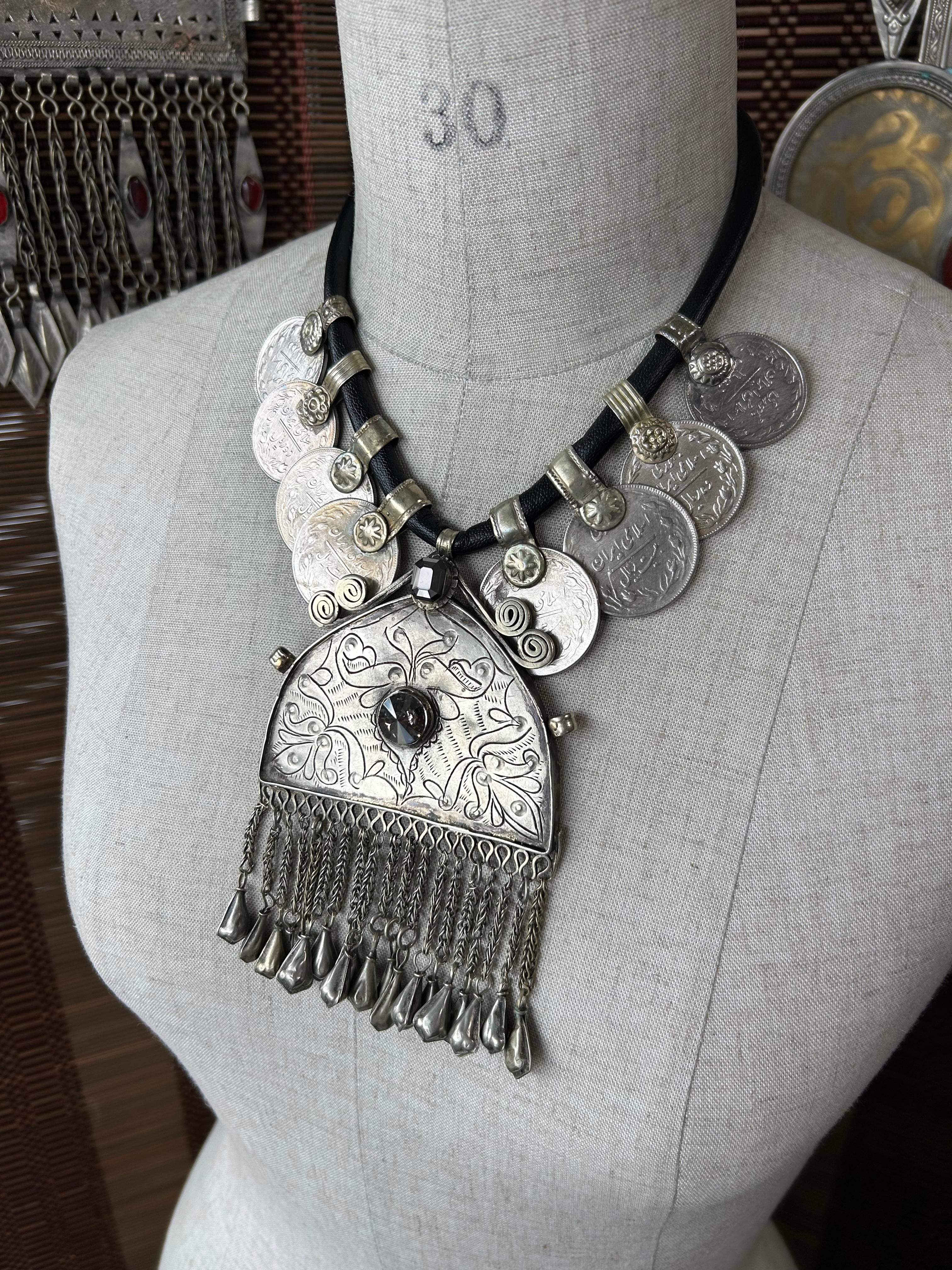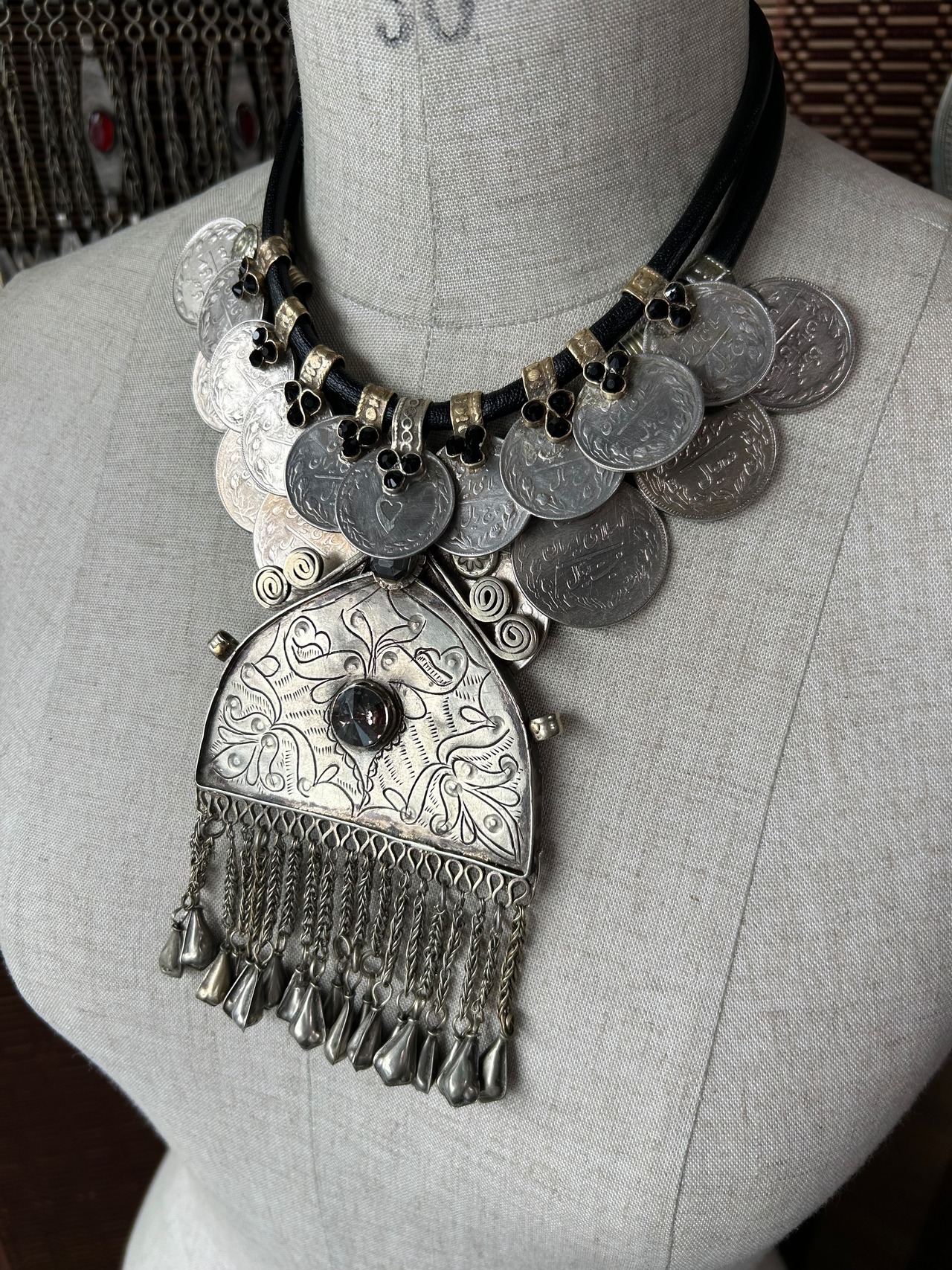 The vegan leather round cord is gentle around the neck, so it is recommended for those who don't like metal.