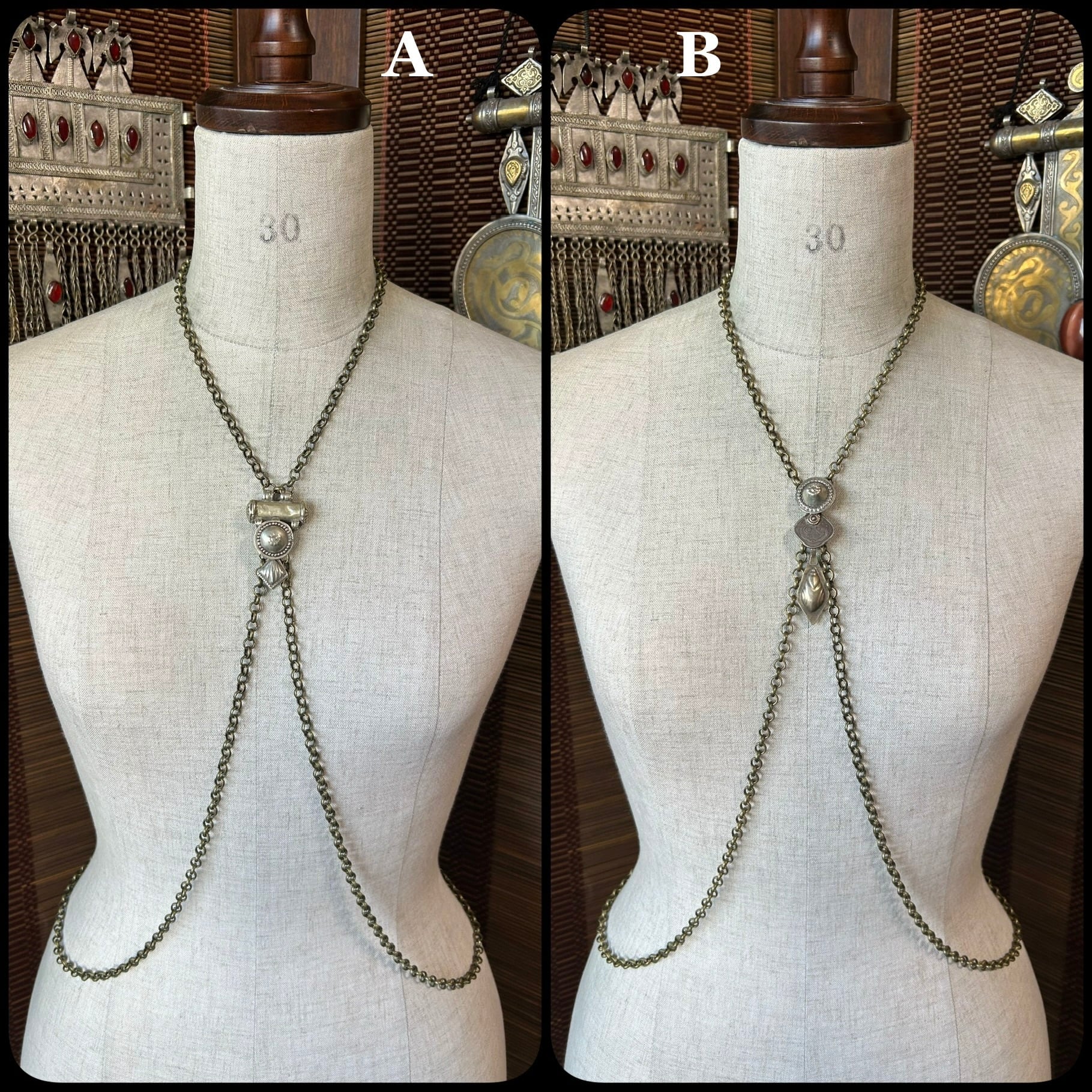 チェーンドレープは一本にし、背中の飾りも省いてよりシンプルにしています。チェーンドレープ2本への追加変更は+1000円にて承ります。オプションを選択してください。